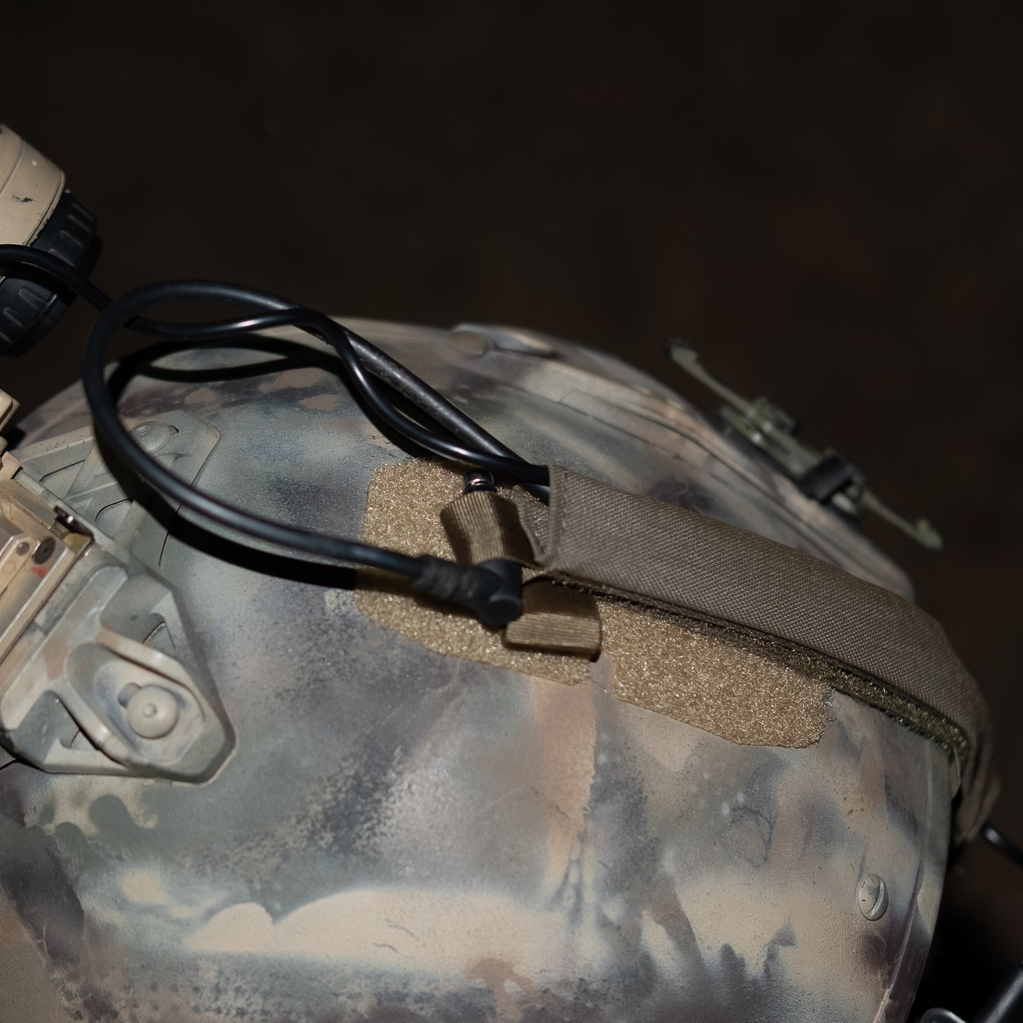 The WIREPATH is designed to wrap cables into a 7 x 3/4" Velcro hook based footprint for attachment to loop fields adhering your helmet or other equipment surfaces. The sleeve can opened by pull tabs allowing you to enclose wiring that may be otherwise prevented from passing through the 3/4" channel due to large connectors or endings. This sleeve was developed for an upcoming collaboration with Sojourn Group that resolves mounting powered devices with slaved external cameras to the helmets of specialized units.